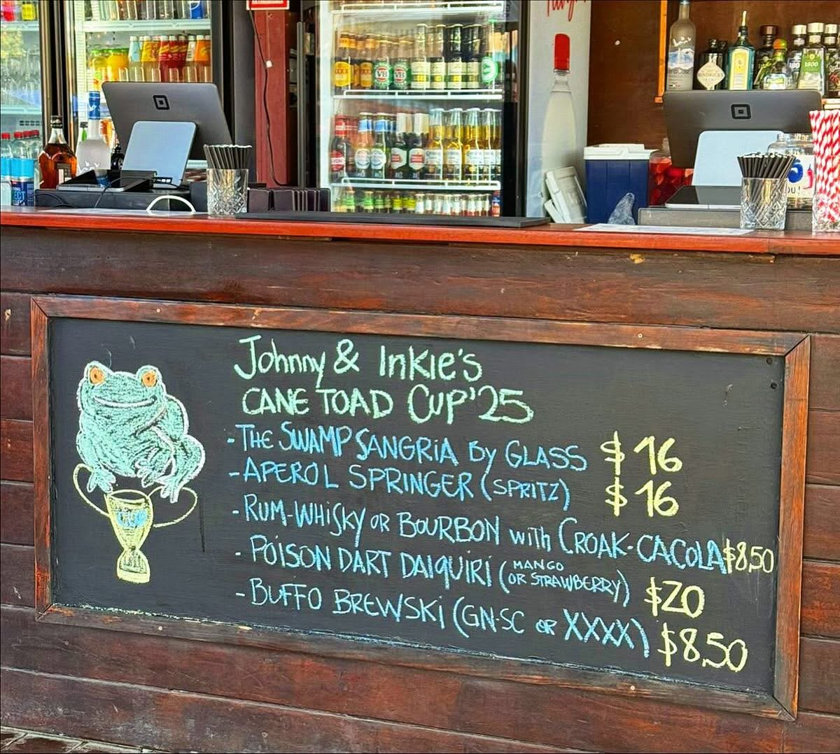 Port Douglas' cane toad racing show is now in its third year at the popular Chilly's Pizza and Trattoria, with a spacious outdoor area perfect for hazardously poorly behaved toad racing!